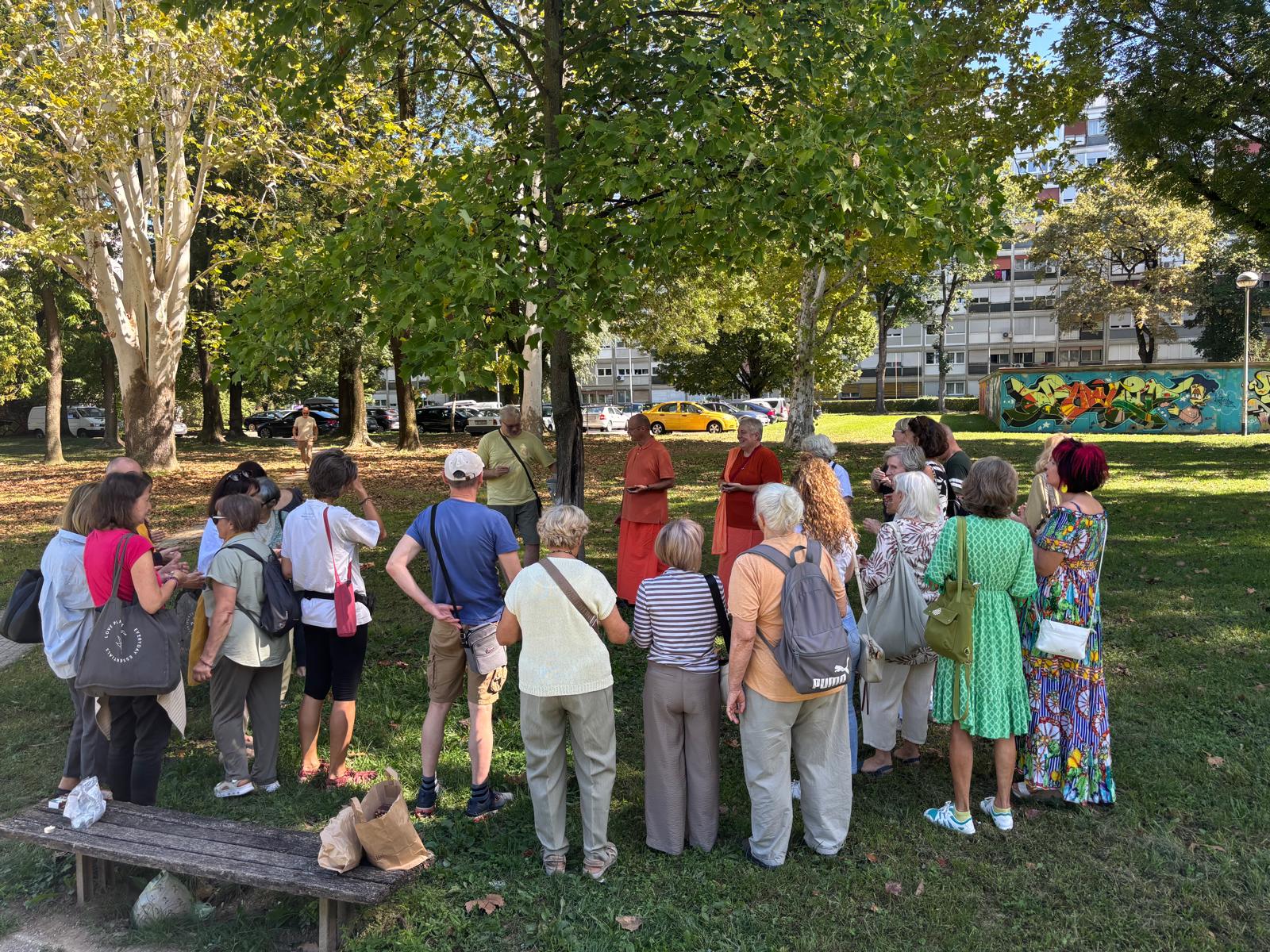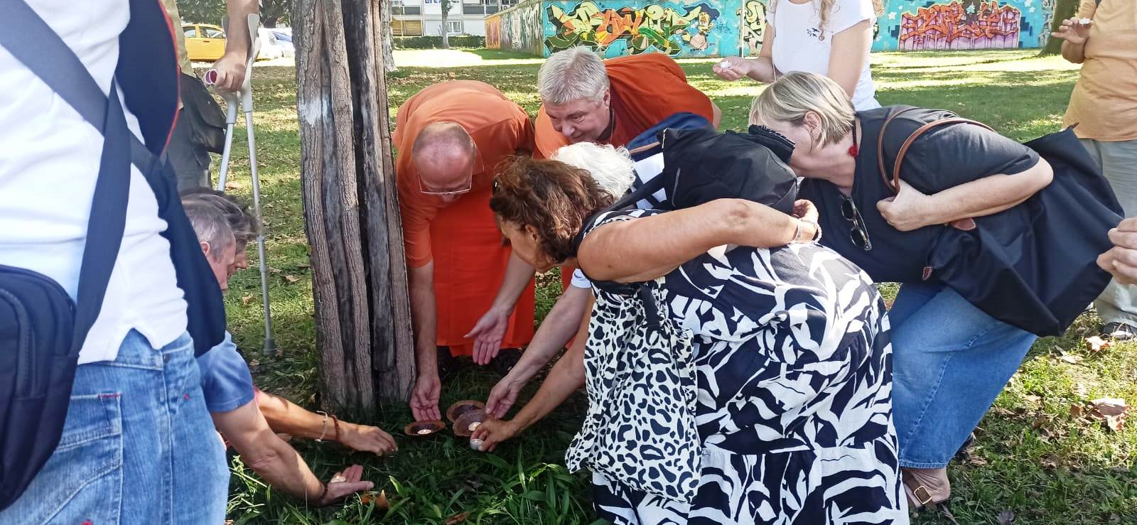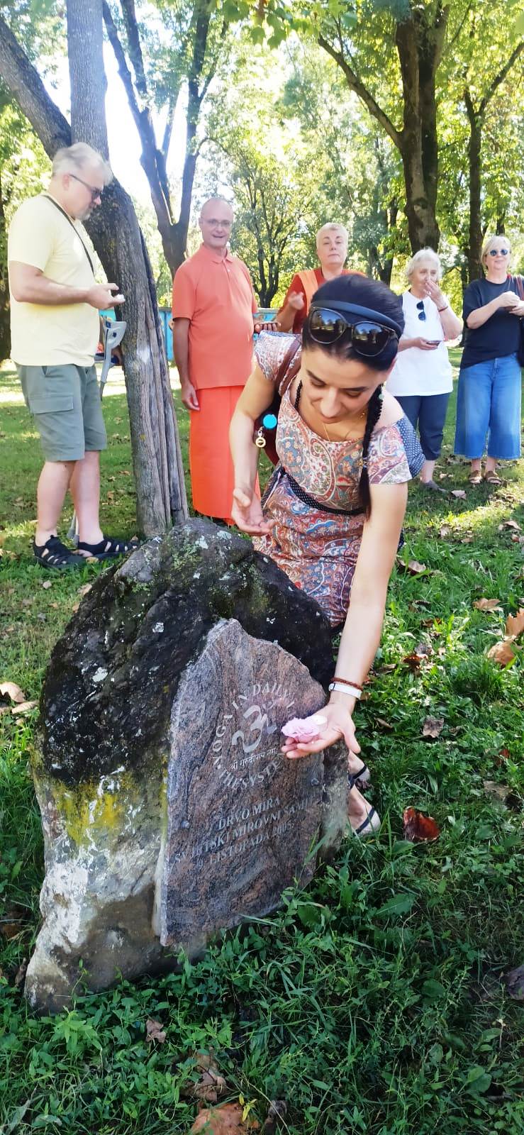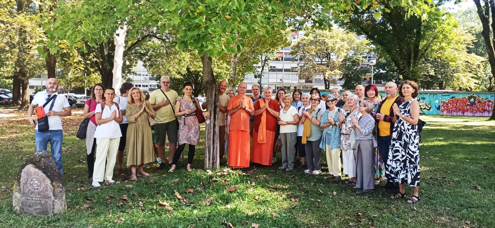 21.9. Okupili smo se oko stabla mira koje je 2005. posadio Vishwaguruji i koje već 20 godina raste unatoč svemu što mu se desilo.Tko ima titikshu u sebi, bilo to stablo ili čovjek, uvijek ima blagoslov Gurudeva i može prebroditi i najveće prepreke.