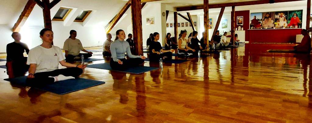 Sat joge je vodio Mahamandaleshwar Swami Vivek Puri, a studenti su sa velikim entuzijazmom i zanimanjem odvježbali i upoznali se sa sustavom Joga u svakodnevnom životu.